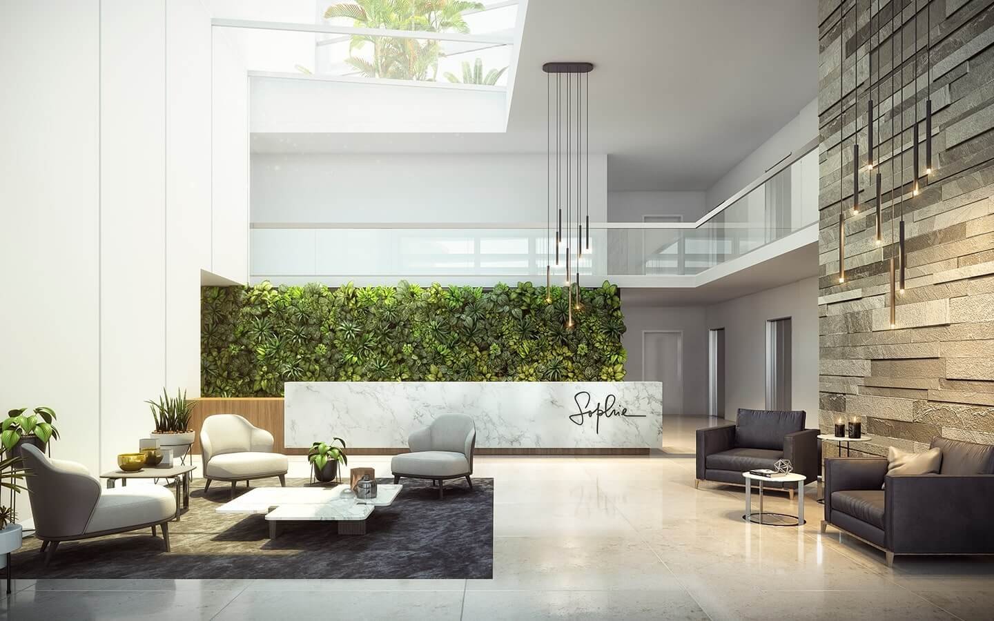 Sophie alberga 26 espaciosas residencias, que incluyen una colección de unidades de una, dos, tres y cuatro habitaciones, además de cuatro penthouses lujosamente diseñados, dos de ellos con techos altos y escaleras desde la sala de estar hasta su terraza privada en la azotea..
